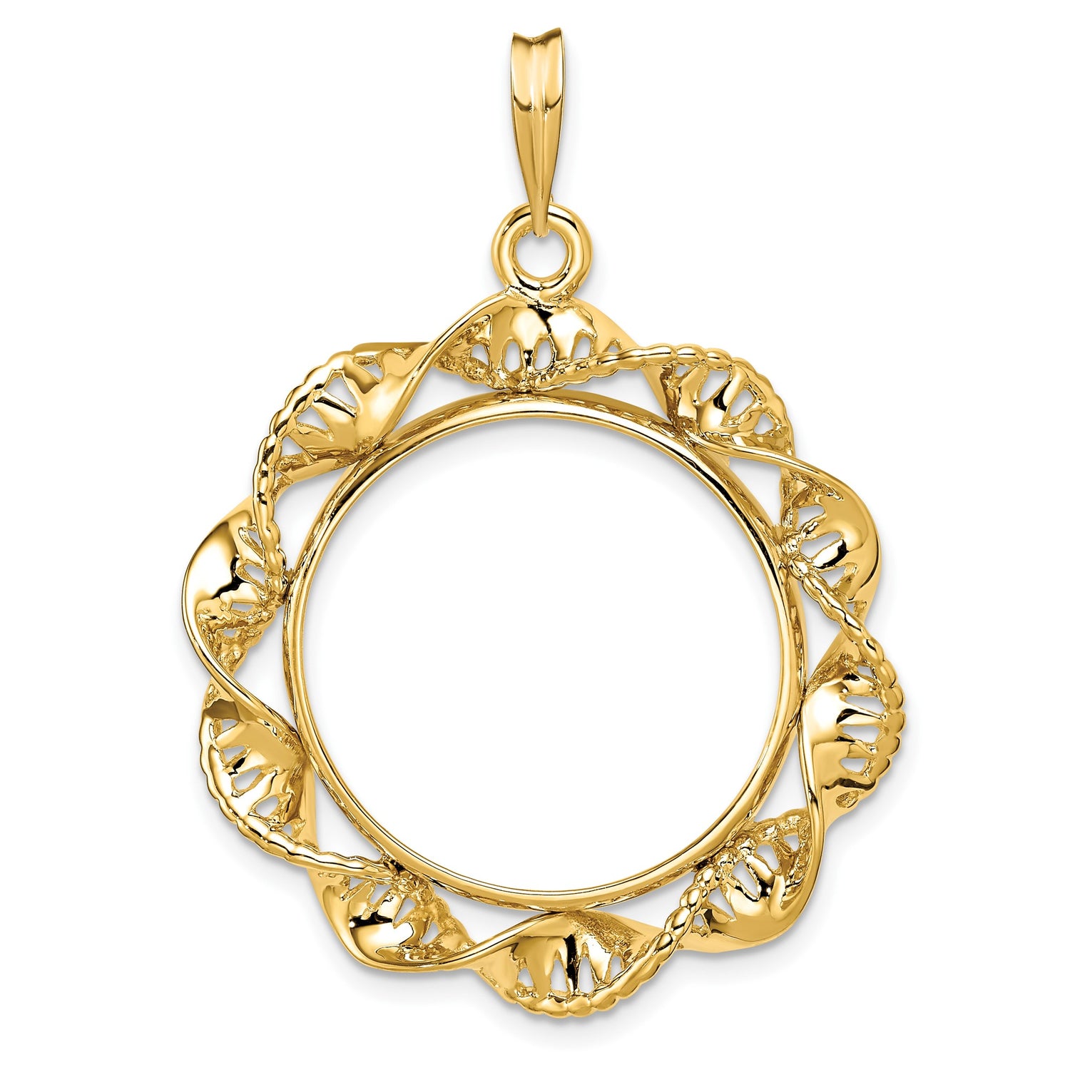 South African 2 Rand Gold Coin Bezel Pendant Prong Set Fancy Twisted Ribbon in 14k Yellow Gold