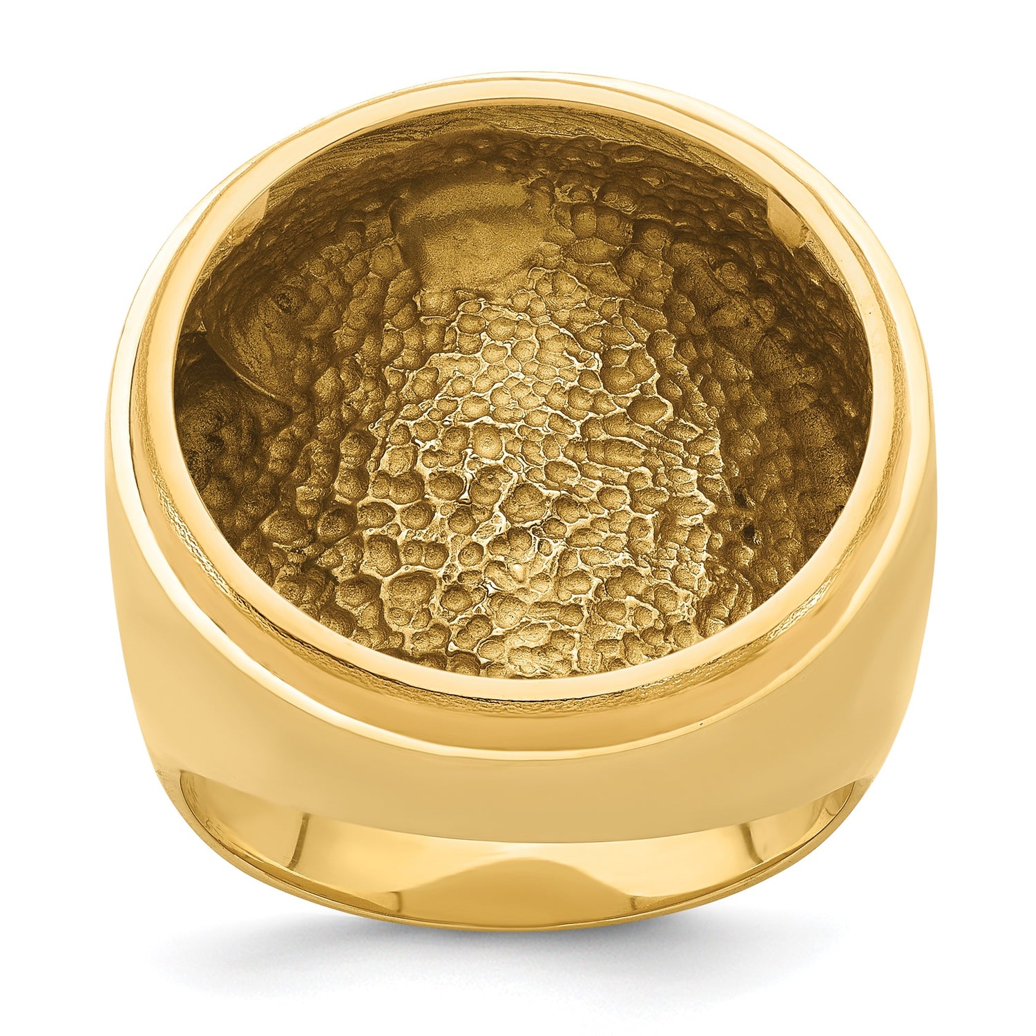 South African 2 Rand Gold Coin Bezel Ring Prong Set Mens Polished Classic Solid Back in 14k Yellow Gold