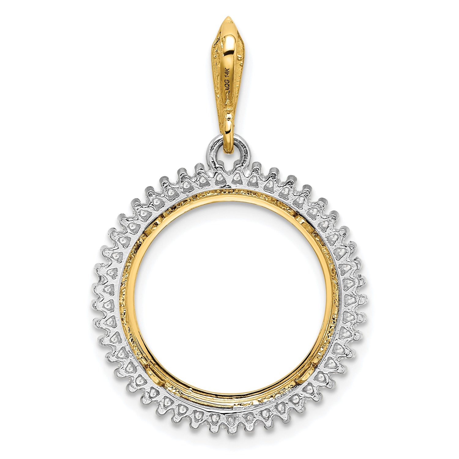 UK 1/10 oz Platinum Britannia £10 Coin Bezel pendant Prong Set Diamond Border in 14k Multi-Tone Gold
