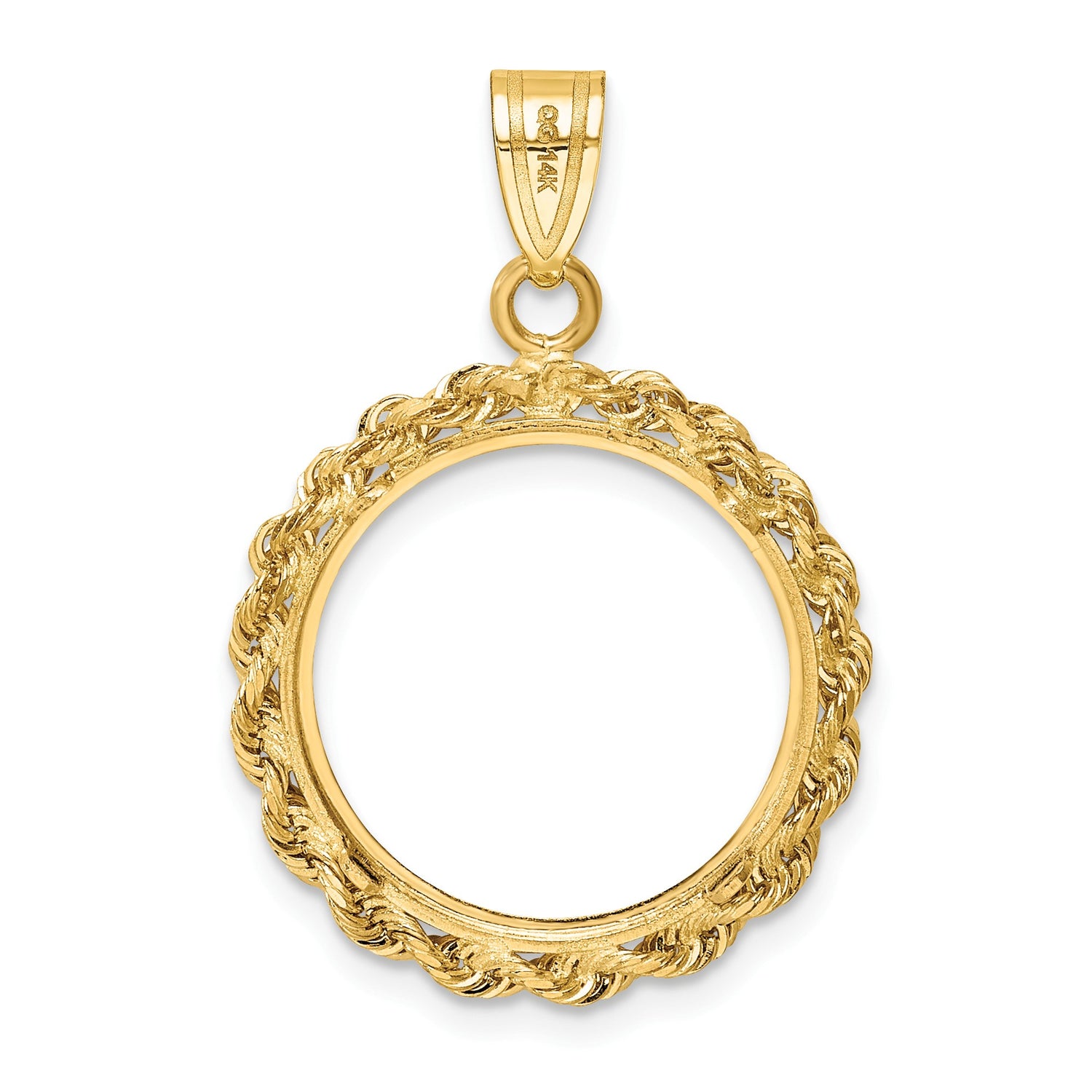 UK 1/10 oz Platinum Britannia £10 Coin Bezel Pendant Prong Set Knotted Rope in 14k Yellow Gold