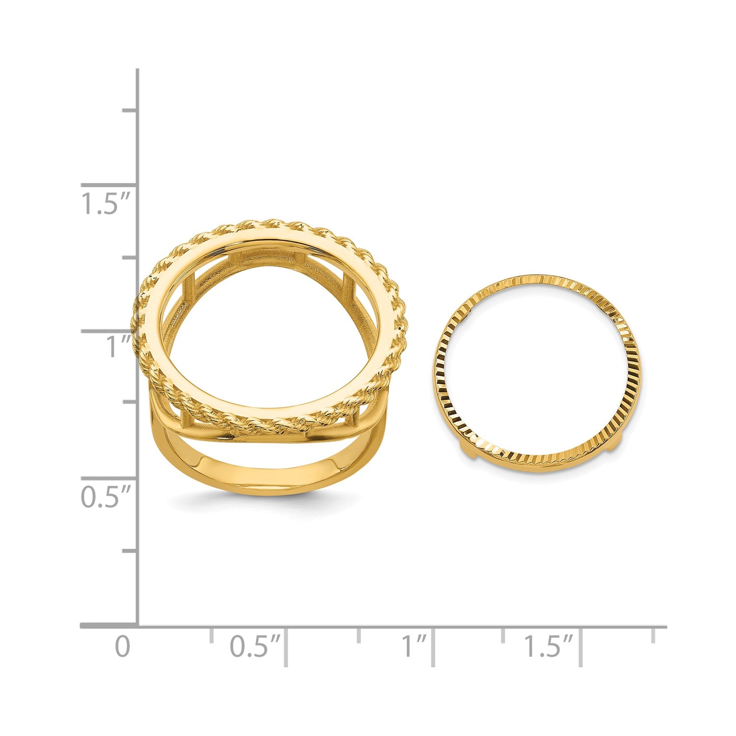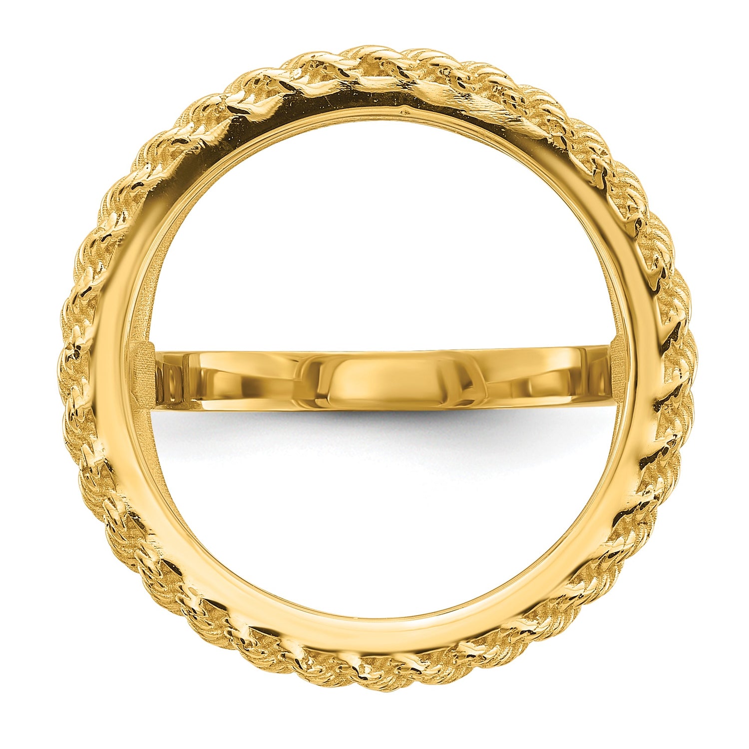 UK 1/10 oz Platinum Britannia £10 Coin Bezel Ring Prong Set Diamond-Cut Rope Edge in 14k Yellow Gold
