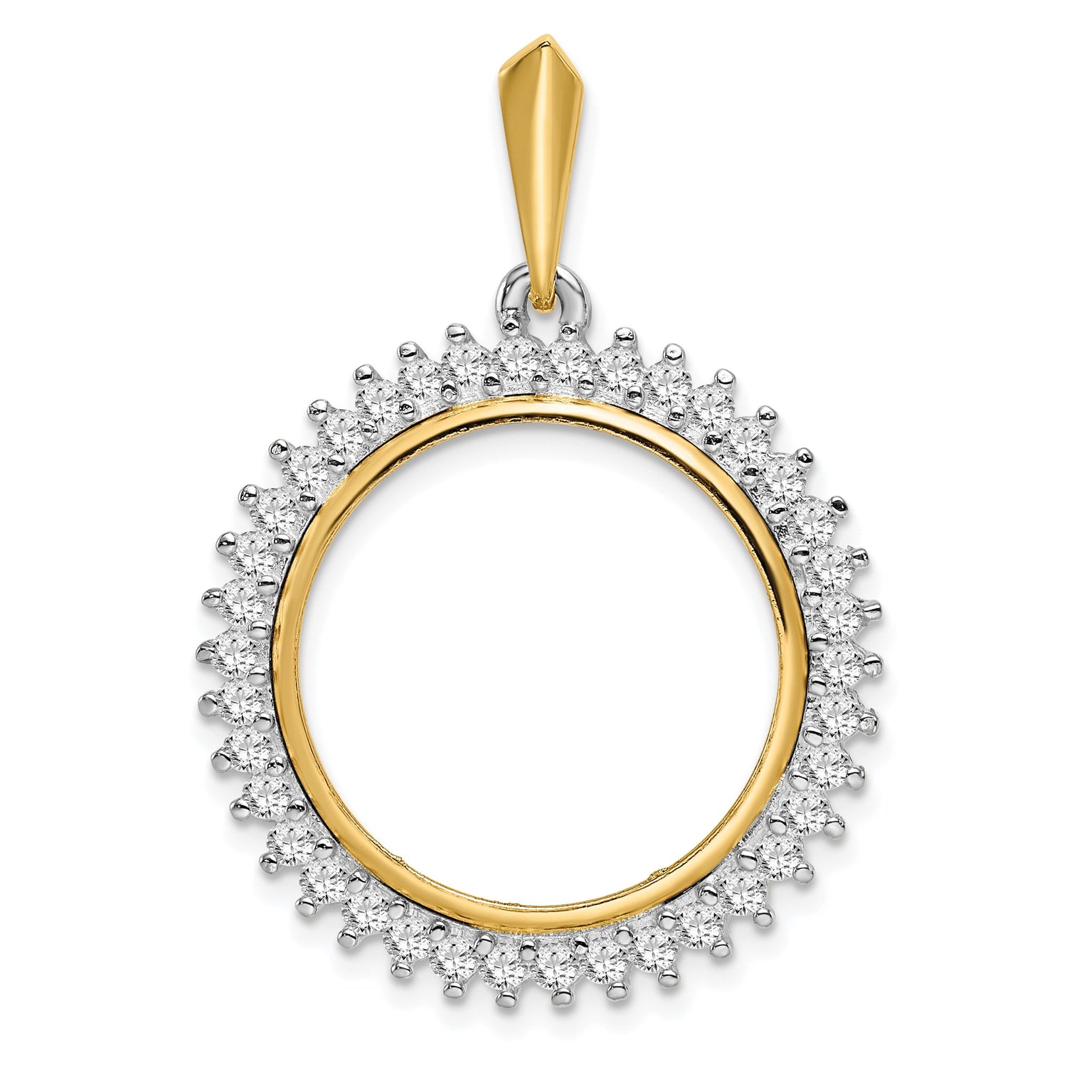 UK 1/4 oz Platinum Britannia £25 Coin Bezel Pendant Prong Set Diamond Circle Border in 14k Multi-Tone Gold