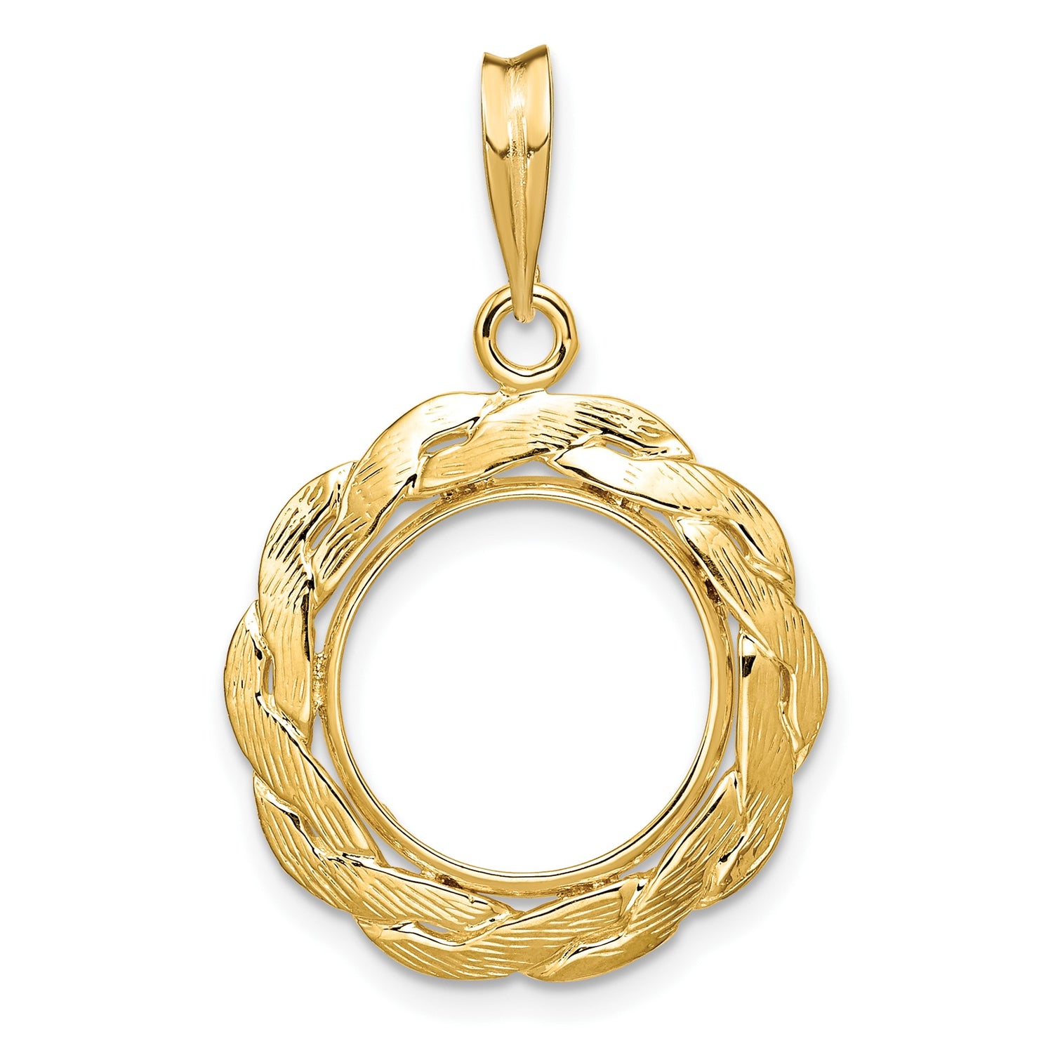 US Gold Dollar Type 1 Indian Princess Small Head $1 Coin Bezel Pendant Prong Set Textured Braided Rope in 14k Yellow Gold