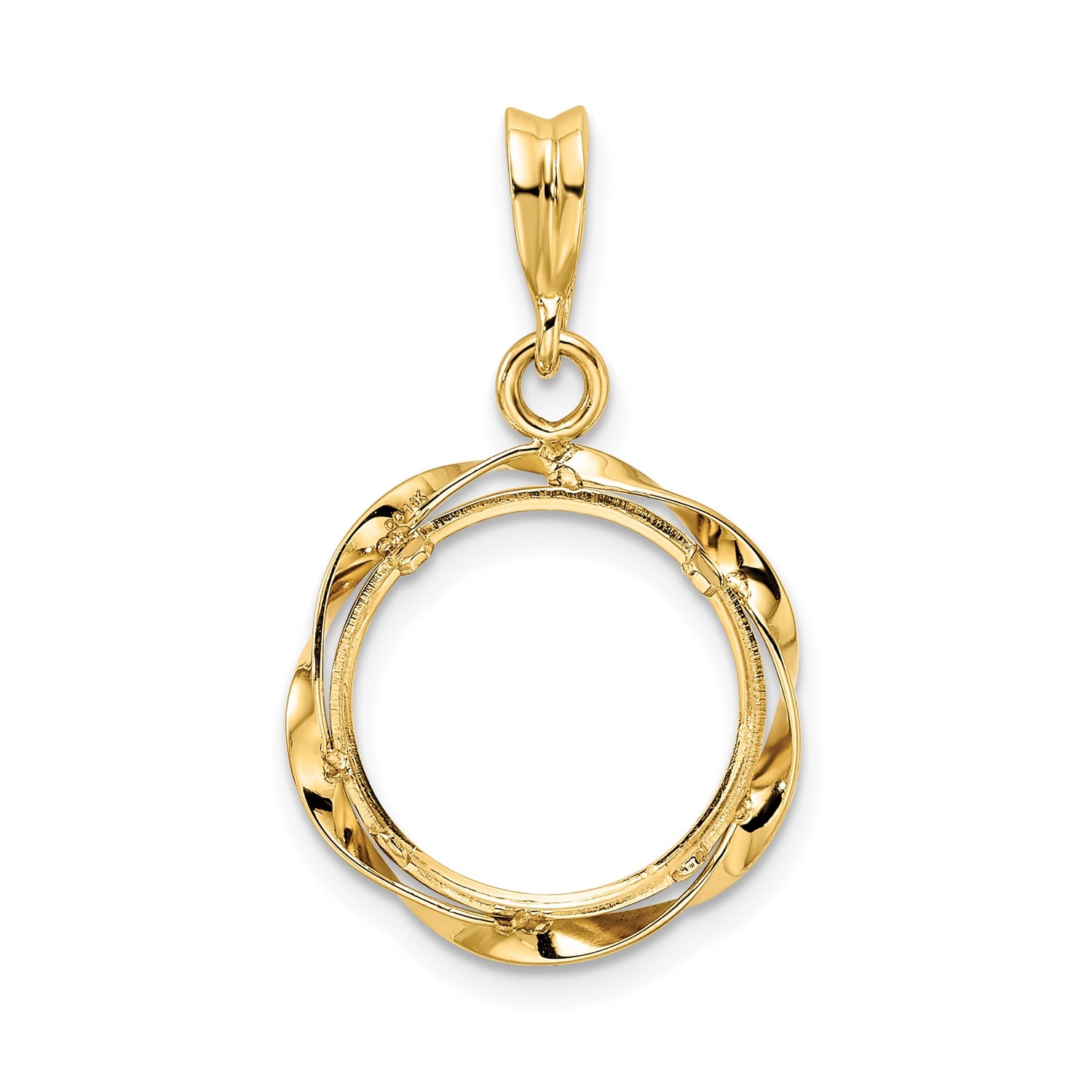 US Gold Dollar Type 1 Indian Princess Small Head $1 Coin Bezel Pendant Prong Set Twisted Ribbon in 14k Yellow Gold