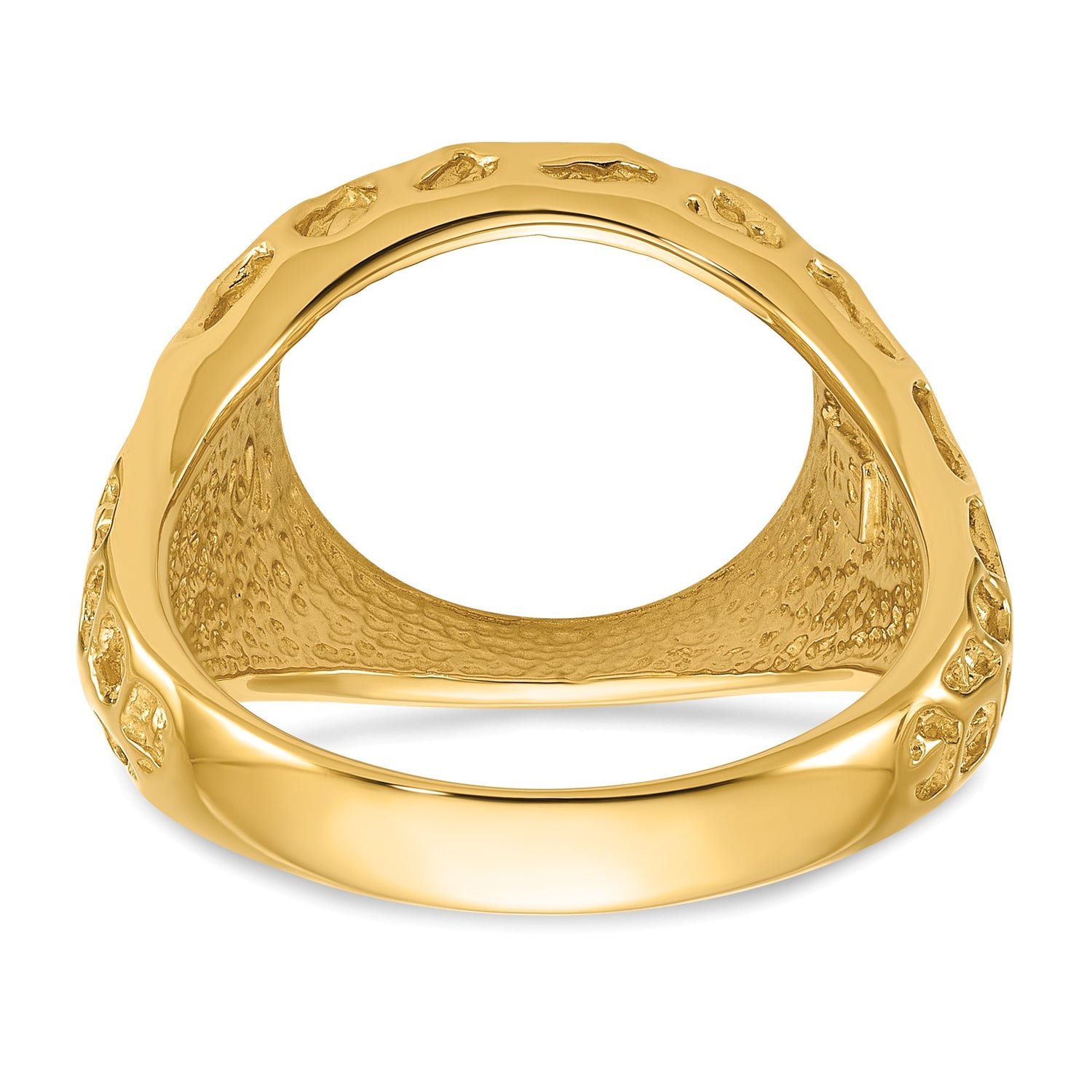US Gold Dollar Type 1 Indian Princess Small Head $1 Coin Bezel Ring Prong Set Mens Carved Nugget in 14k Yellow Gold