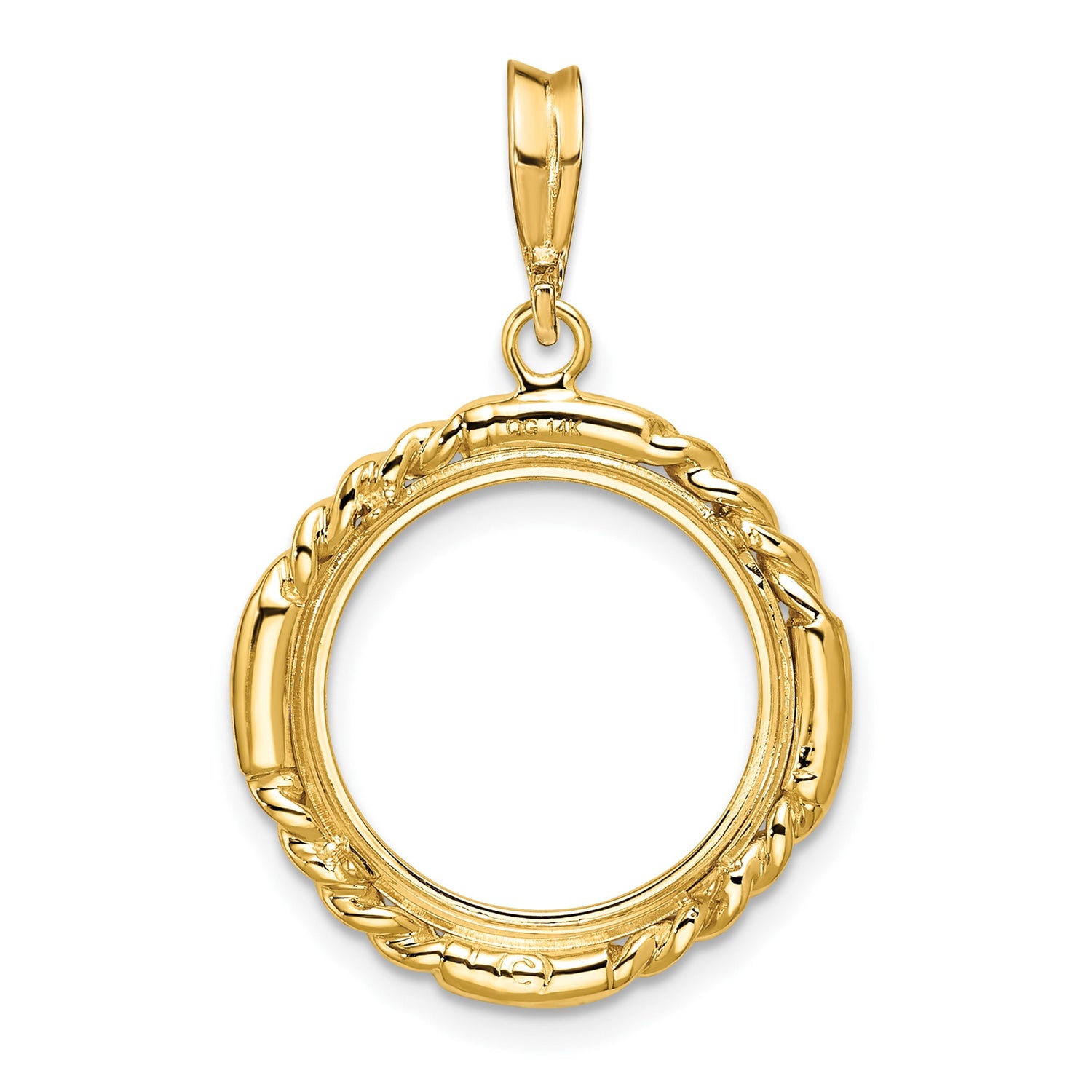 US Gold Dollar Type 2 Indian Princess Small Head $1 Coin Bezel Pendant Prong Set Quadruple Twist in 14k Yellow Gold