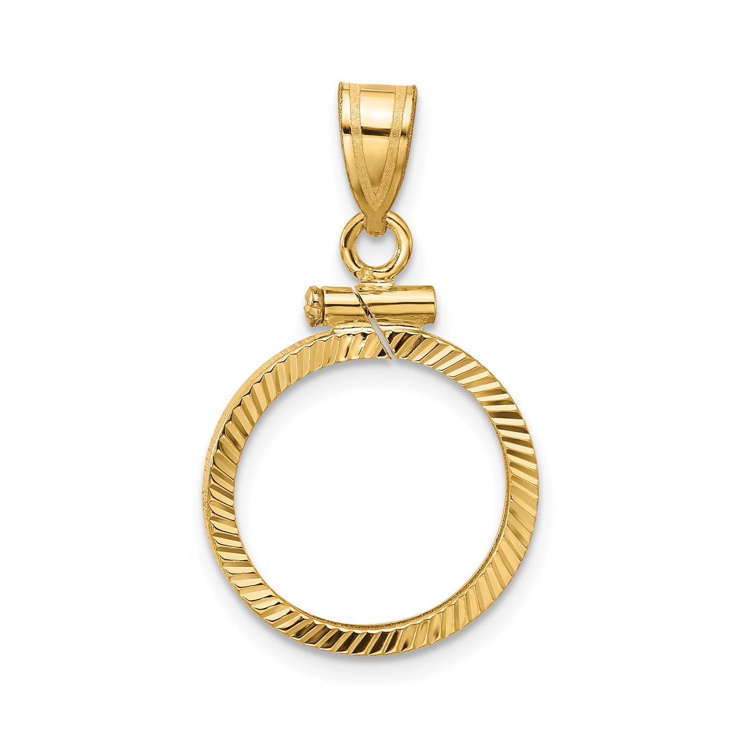 US Gold Dollar Type 3 Indian Princess Large Head $1 Coin Bezel Pendant Prong Set Diamond-Cut Reeded Edge in 14k Yellow Gold