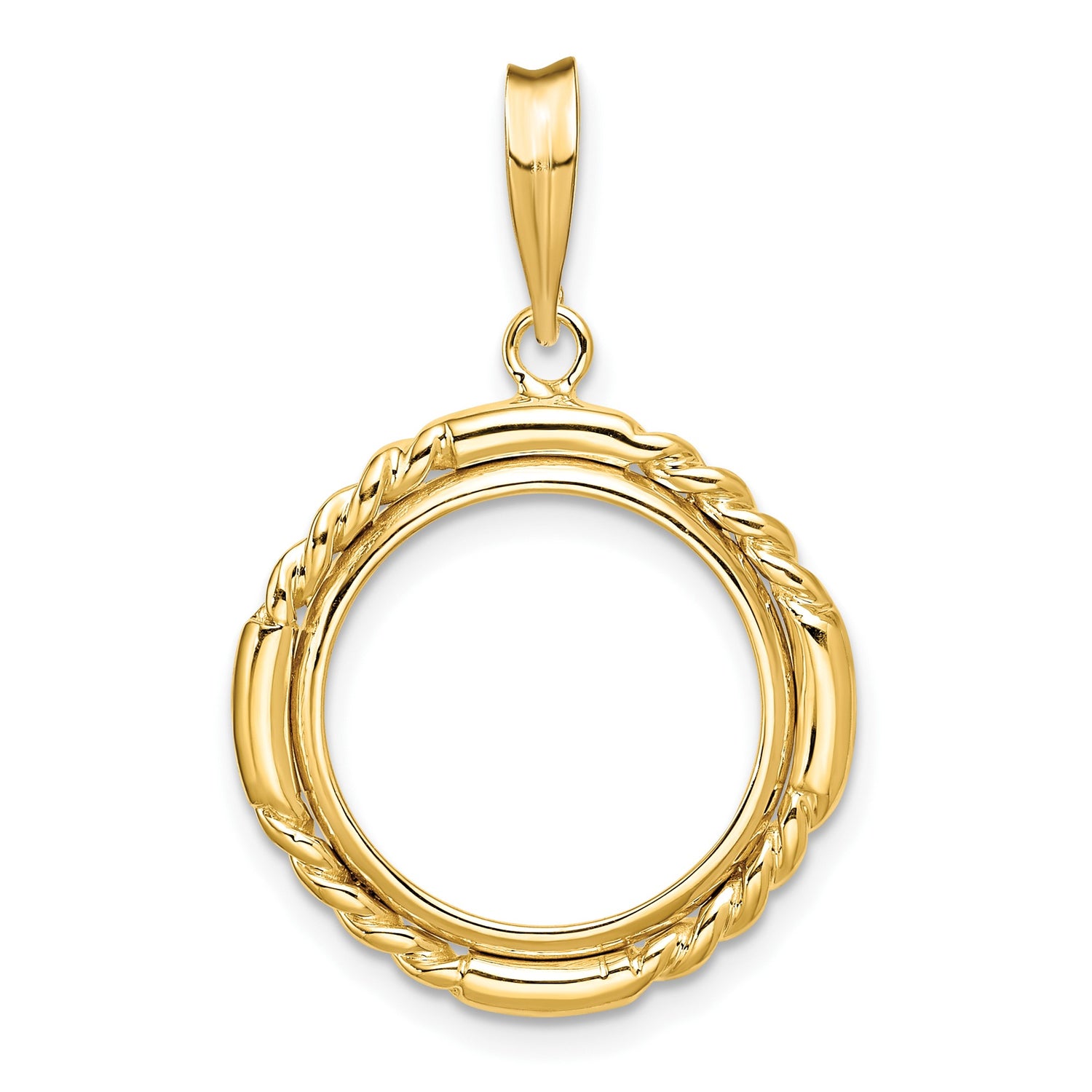 US Gold Dollar Type 3 Indian Princess Large Head $1 Coin Bezel Pendant Prong Set Quadruple Twist in 14k Yellow Gold