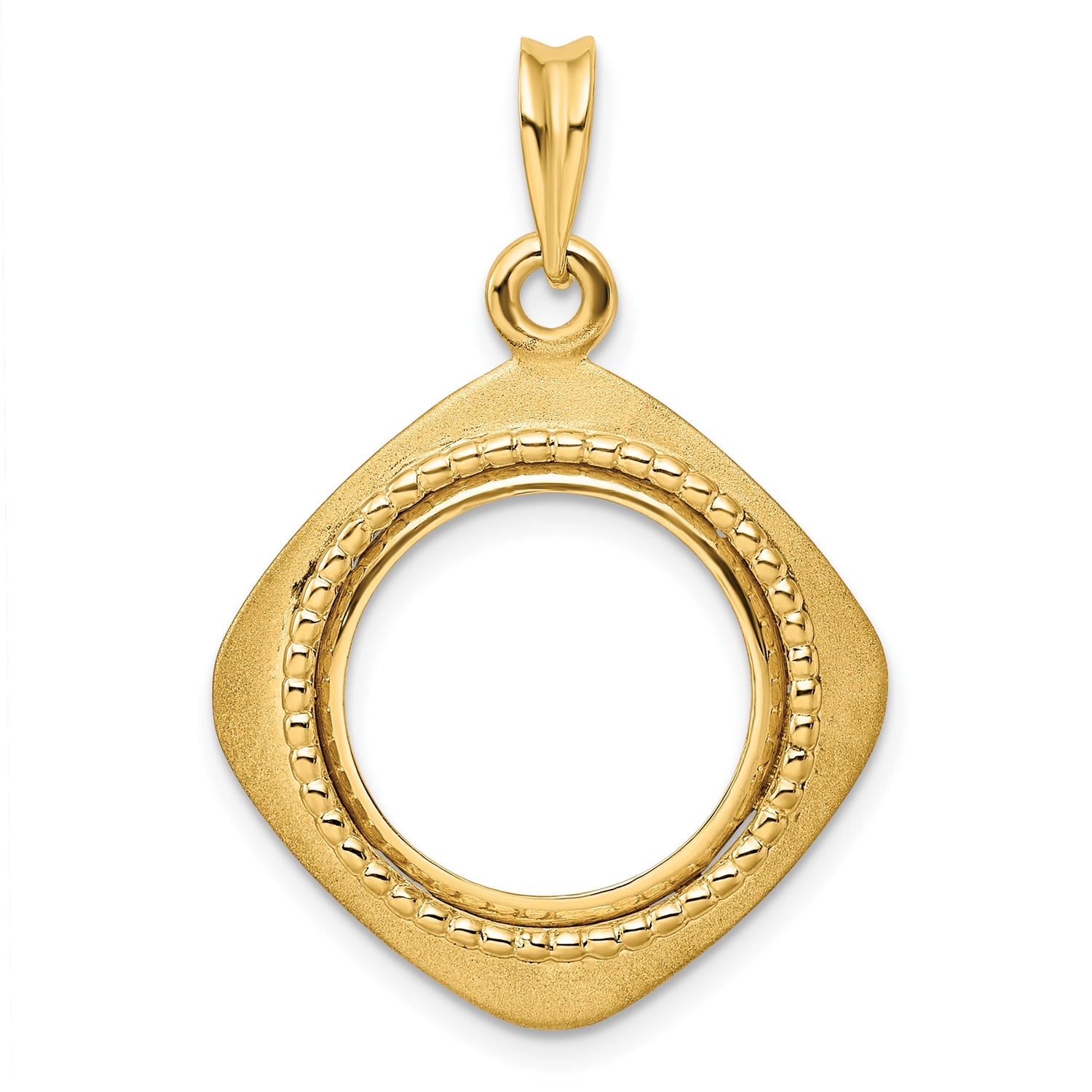 US Gold Dollar Type 3 Indian Princess Large Head $1 Coin Bezel Pendant Prong Set Textured Square Frame in 14k Yellow Gold