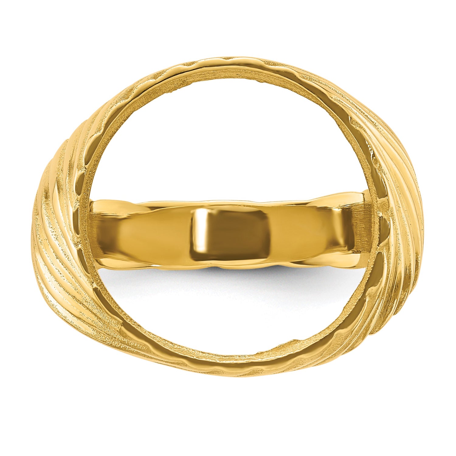 US Gold Dollar Type 3 Indian Princess Large Head $1 Coin Bezel Ring Prong Set Mens Polished Diagonal Fluting in 14k Yellow Gold
