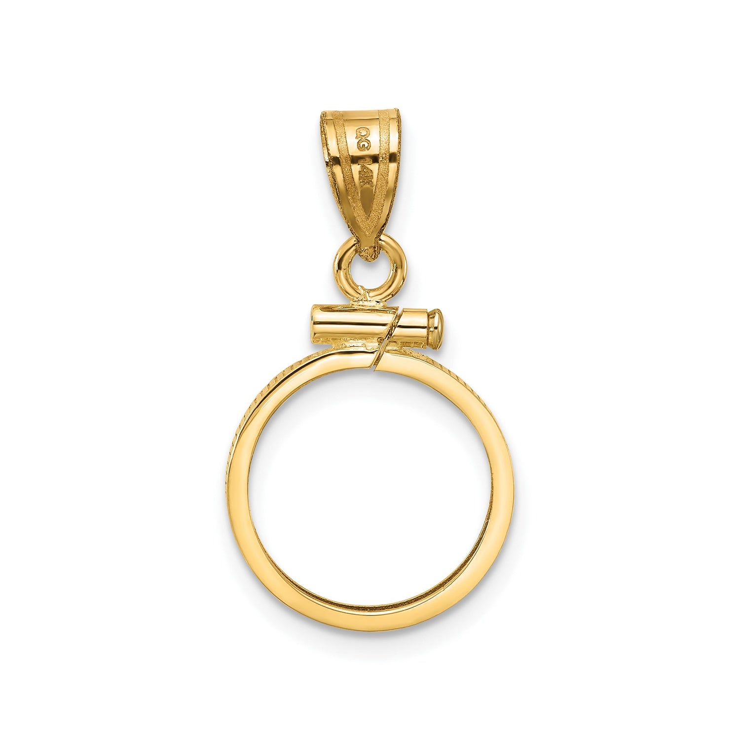13 mm Coin Bezel Pendant Prong Set Reeded Edge in 14k Yellow Gold