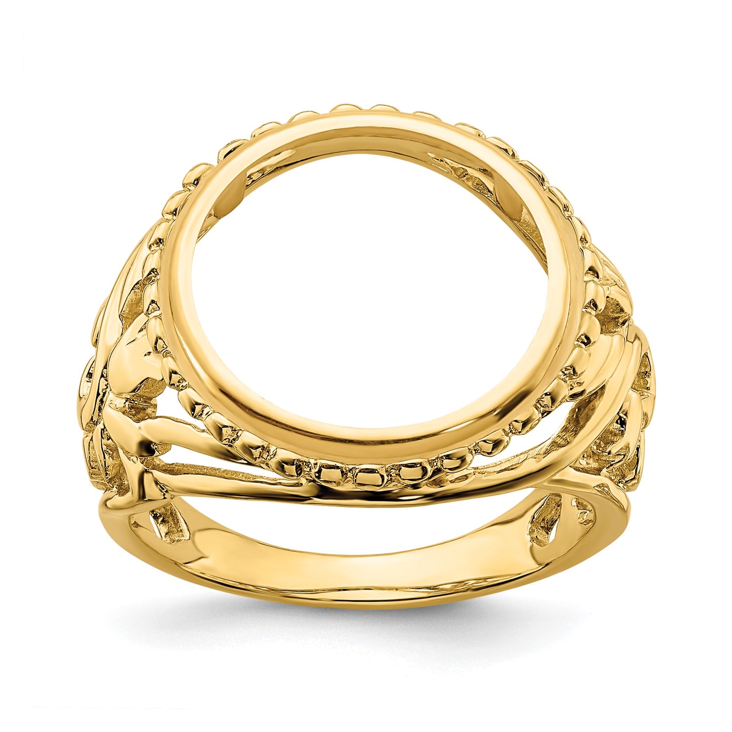 US Silver Trime Star Shield Roman III 3¢ Coin Bezel Ring Prong Set Filigree and Beaded Edge (14 mm) in 14k Yellow Gold